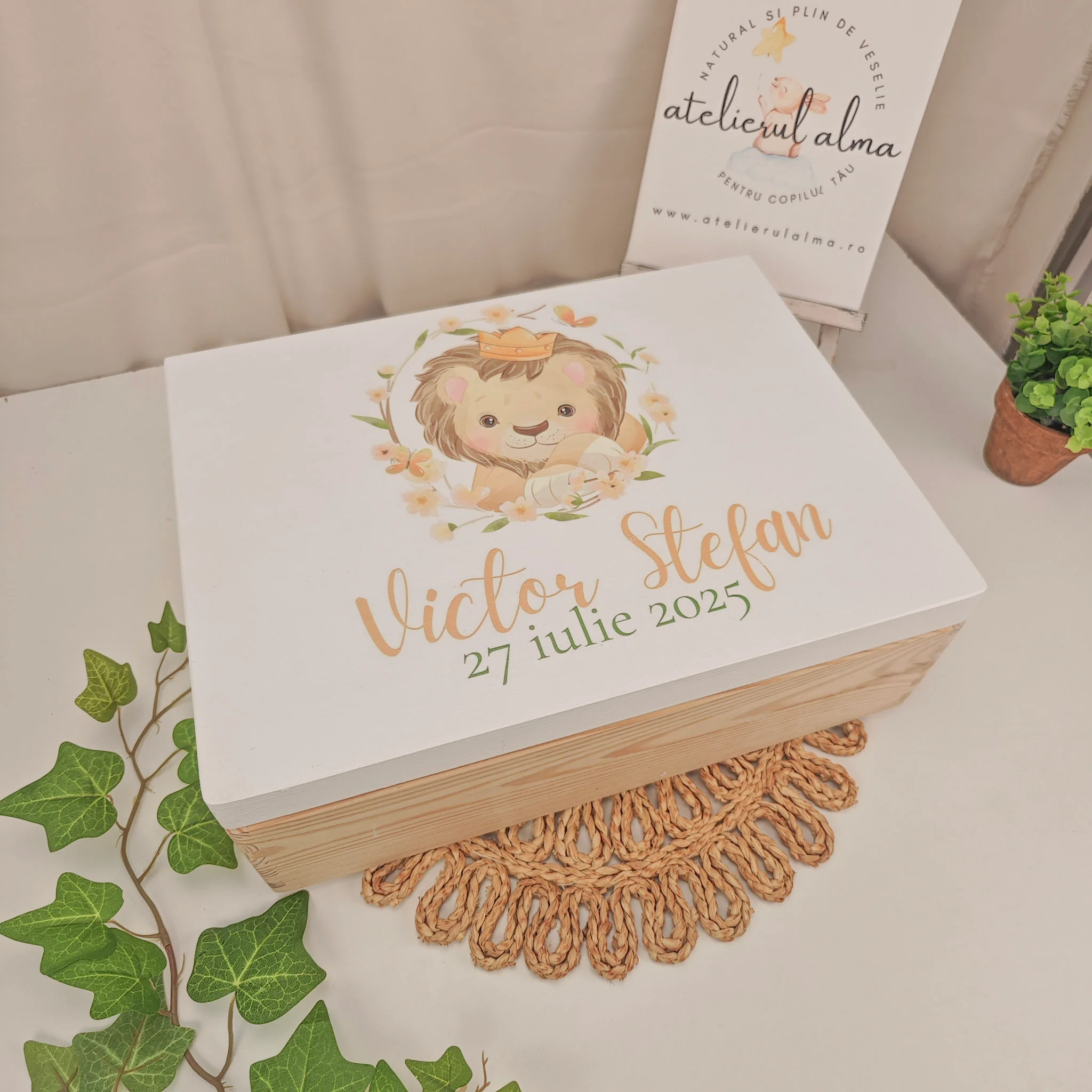 Pentru ca fie că participi la o zi de nastere, botez sau babyshower, ce cadou poate fi mai perfect pentru un copilas decât un produs personalizat ? Cutia de lemn personalizată a fost concepută pentru a fi unică pentru minunea ce urmeaza sa il primeasca.