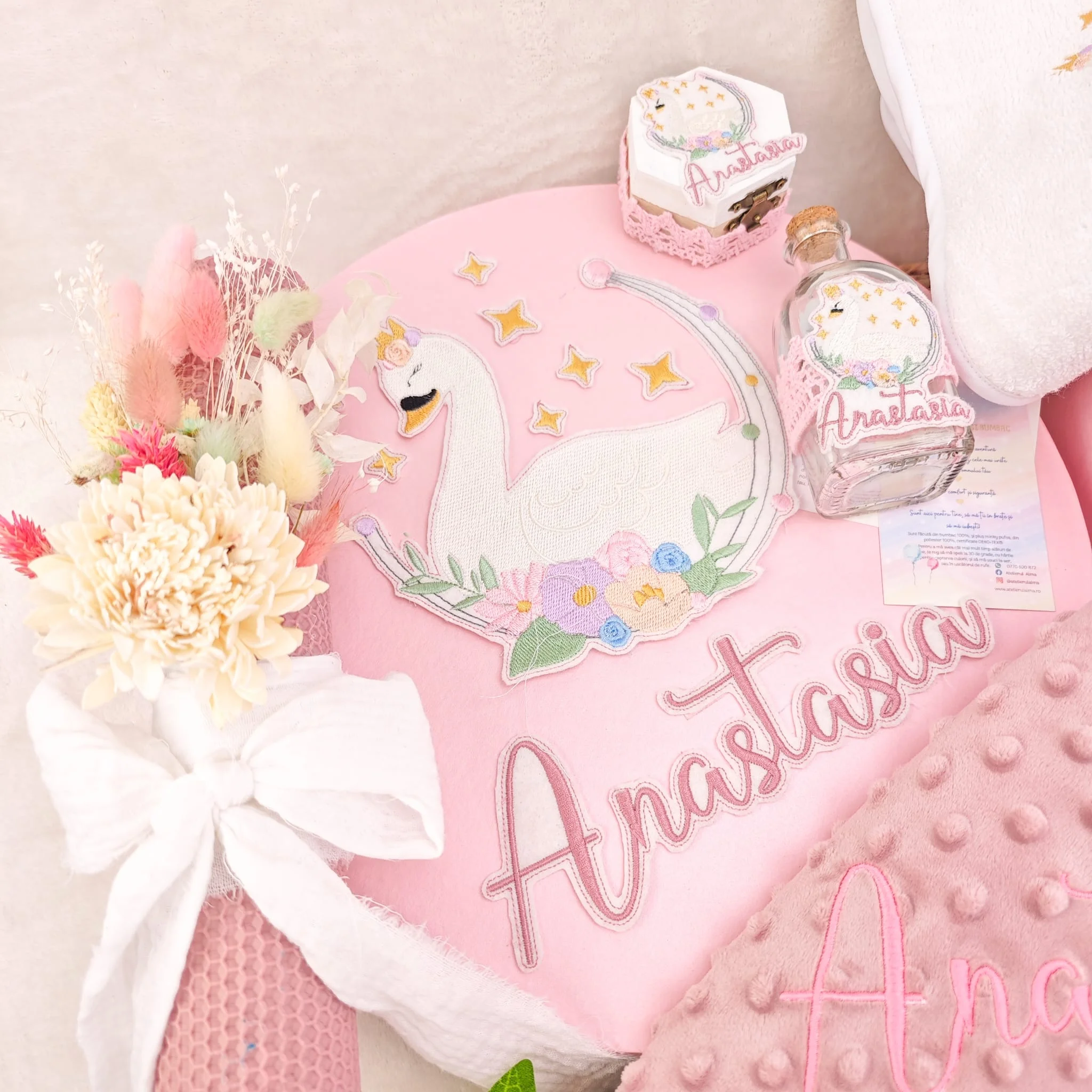 Toate produsele noastre sunt create intr-un micut atelier din Romania. Sunt gandite, create si produse integral de noi, pentru a avea un produs unic pentru tine si copilasul tau. Produsele noastre sunt lucrate handmade, punandu-ne toata iubirea si atentia in crearea lor.