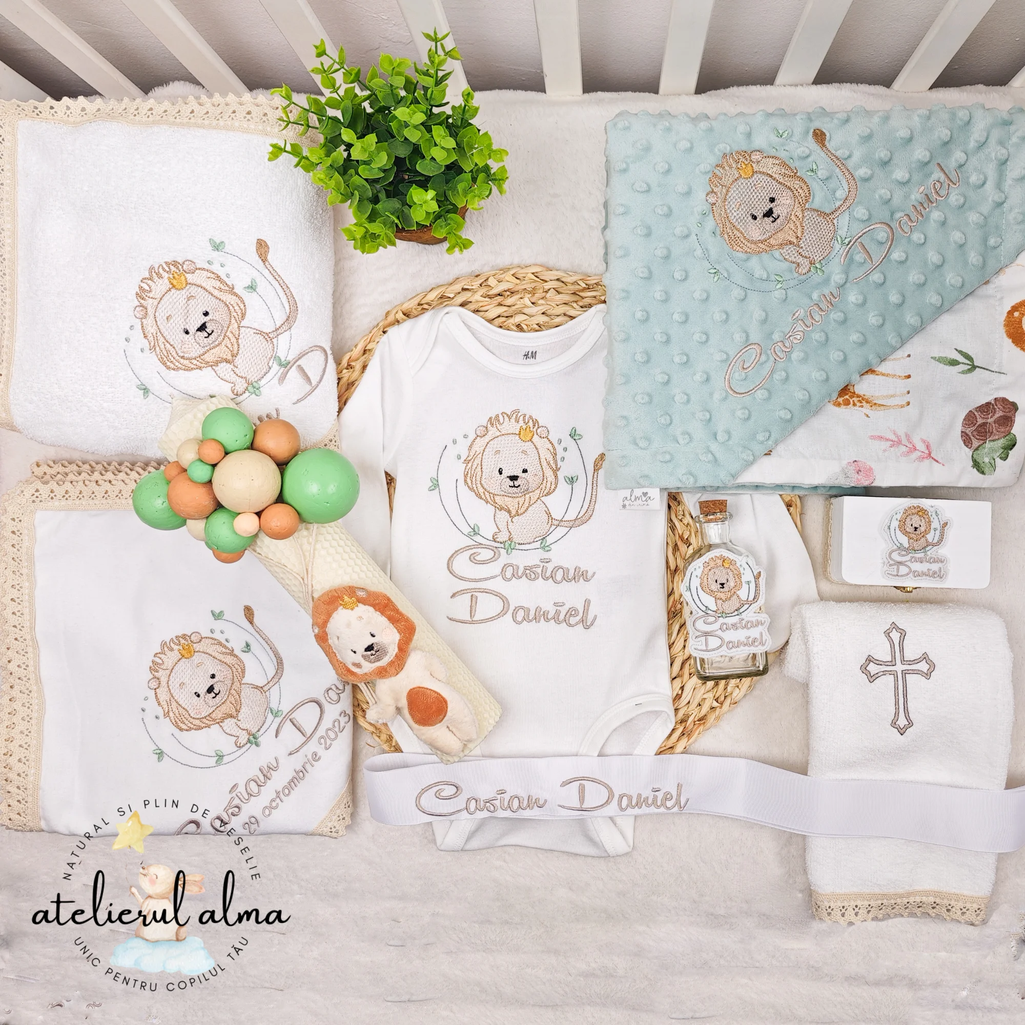 Alege un trusou botez personalizat light, un set complet și elegant care conține toate elementele esențiale pentru ceremonia religioasă, completate de articole utile pentru bebeluș. Acest tip de trusou botez complet este ideal pentru părinții și nașii care își doresc un echilibru perfect între tradiție, utilitate și design modern.